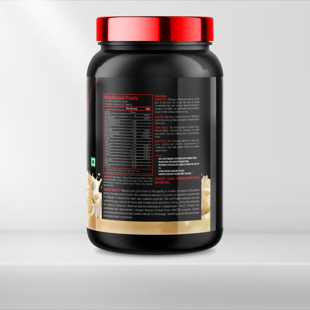 Pro Nutri Core Anabolic Mass Gainer is designed with powerful ingredients like 379 kcal of pure energy, 22g of high-quality proteins, 3g of BCAA’s, 5.5g Glutamine of high-quality digestive enzymes and more, this product is specifically formulated to support effective mass gaining. It aids in building lean muscle and achieving your desired physique. Experience the difference with Anabolic Mass Gainer.